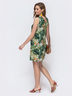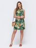 Платье-трапеция с растительным принтом. Изделие дополнено вырезом по спинке, по горловине оборка.