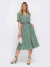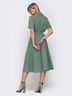 Летящее платье из костюмной ткани. Лиф с фиксированным запахом на груди. Для удобства предусмотрены эластичная деталь в поясе и карманы в боковых швах. Тканевый пояс с пряжкой в комплекте.