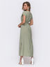 Нежное платье из струящегося софта в трендовый «горох». Изделие прямого кроя с разрезами по бокам. На спинке застёжка на пуговицу. Пояс из основной ткани в комплекте.