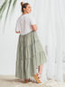 Летнее платье свободного кроя с коротким рукавом и удлиненной спинкой.