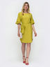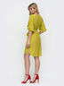 Однотонное платье из софта прямого кроя. Цельнокроеный рукав дополнен рюшами. Подол платья закруглен. Пояс из основного материала в комплекте.