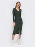 Обтягивающее тёплое платье из мягкого трикотажа с нитью люрекса. Модель дополнена декоративными пуговицами по планке. Для удобства в носке спереди предусмотрен разрез. Идеально подойдет типам фигуры «песочные часы» и «прямоугольник».