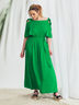 Однотонное платье-макси с широкими бретелями-завязками. Линия талии дополнена эластичной резинкой.