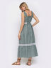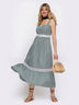 Сарафан из хлопка в мелкую клетку виши. Облегающий лиф на широких бретелях с завязками. Изделие дополнено широким воланом снизу и ажурными вставками из кружева. Для комфортной посадки по фигуре в центральной части спинки предусмотрена вафельная сборка.