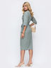Зеленое платье на запах из рогожки с рукавом ¾. Объёмные карманы в боковых швах держат форму, придавая изделию силуэт «песочных часов».