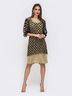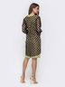 Коктейльное платье приталенного силуэта из блестящего люрекса. Сверху модель дополнена тонким слоем фатиновой сетки в крупный горох. Хорошо подойдёт обладательницам типа фигуры «прямоугольник», «песочные часы».