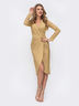 Вечернее платье из блестящего люрекса на ложный запах. Глубокий V-образный вырез акцентирует внимание на зоне декольте. Идеально подойдёт для девушек с типом фигуры «песочные часы» и «прямоугольник».