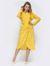 Платье из струящегося софта в горох. Изделие с лифом на запах и эластичной деталью в поясе. Горловина переходит в завязки, из которых можно завязать бант. На модели представлен 44 размер: длина по спинке – 122 см; длина рукава (от горловины) – 68 см;