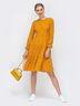 Расклешённое платье из принтованного софта. Модель с эластичной деталью на манжетах. Застегивается на пуговицу по спинке.