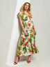 Длинное платье с открытым плечом на завязках. Объемная оборка вдоль выреза. Модель отрезная по талии с вафельной сборкой под бюстом. По низу широкий асимметричный волан.