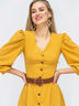 Платье-макси с отрезной талией. Модель с объёмным рукавом «буф» и эластичной деталью в манжетах. Для удобства в носке предусмотрены прорезные карманы по бокам. Тканевый пояс в комплекте.