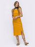 Льняное платье приталенного кроя с завышенной талией. Декорировано по полочке пуговицами. Без застежек.