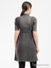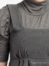 Платье - двойка, состоит из водолазки с короткими рукавами и воротником "гольф". Сарафан на широких бретелях. Спереди присутствуют два накладных кармана.