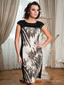 Очаровательное женское платье слегка приталенного силуэта, выполнено из шелковистой ткани. Изделие с округлым вырезом горловины и короткими рукавами. Платье декорировано стильным принтом.