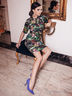 Великолепное платье с воротником стойка и рукавами 3/4. Модель декорирована клапаном с яркой цветочной расцветкой. Прекрасный вариант для модных женщин, желающих подчеркнуть свою индивидуальность и хороший вкус.