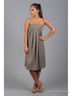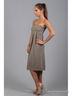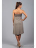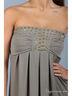 Детали: платье без бретелей, на вшитой резинке, область груди украшена вставками-кнопками золотого цвета, сзади на лопатках резинка собрана, юбка плиссированная А-стиля.