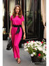 Крой, подходящий для всех типов фигур, и яркое решение ткани сделают Ваш образ интересным и запоминающимся. Длина легко регулируется с помощью пояса. Платье длины макси с короткими рукавами и округлым вырезом горловины.