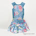 Комбинированный сарафан с цветочным принтом. Юбка выполнена в виде оборок. Пояс широкий и завязывается в бант. На спине застежка - молния.