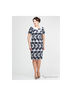 Платье с короткими рукавами и округлым вырезом горловины. Модель приталенного покроя подчеркнет достоинства фигуры. Изделие выполнено в пестрой расцветке и дополнено декоративным элементом спереди. Отличный вариант на каждый день.