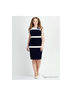 Женственное платье приталенного силуэта с короткими рукавами и округлым вырезом горловины. Изделие приталенного покроя, дополнено контрастной расцветкой. Отличный выбор современной леди, тонко чувствующей новые веяния моды.
