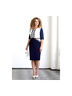 Симпатичное платье с округлым вырезом горловины и рукавами длиной 3/4. Приталенный крой и тонкий ремешок на талии. Изделие декорировано застежкой на молнию и оформлена контрастной расцветкой.
