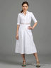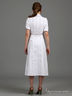 Белоснежное платье из плотного хлопка с "жатым" эффектом, в стиле "Сафари". В застежку "поло" встроена глубокая встречная складка на подоле юбки. Рукав может быть подвернут. Прозрачная сетка на талии придает пикантности этой лаконичной модели.