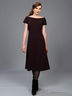 Модель с короткими рукавами и вырезом горловины "лодочка". Платье современного дизайна, может использоваться как сарафан поверх блузки или водолазки.  Превосходный вариант на каждый день для стильных женщин.