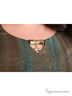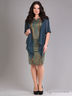 Платье выполнено из тонкого трикотажного полотна с рисунком золотого цвета, без молнии. Рукава и отделочные детали переда - из шифона. Горловина украшена декоративным элементом в цвет золота.