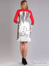 Платье выполнено из трикотажного полотна с принтом, отделка из однотонного трикотажа, без молнии. Модель с рукавами 3/4 и фигурным вырезом горловины. Отличный вариант для вашего гардероба.