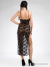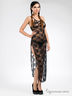 Длинное облегающее платье из ткани в сеточку с боковыми разрезами.