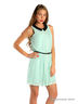 Платье с короткими рукавами и округлым вырезом горловины. Модель приталенного кроя выполнена из качественного материала привлекательной расцветки. Отличный вариант для создания романтичного образа.