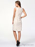 Коктейльное платье-футляр без рукавов, с глубоким круглым вырезом горловины. Платье выполнено из жаккардовой ткани с добавлением люрекса и украшено аппликацией из тюли и органзы, бисера и металлических пайеток.