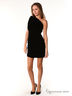 Платье под бархат, с открытым плечом и одним коротким рукавом, украшено стразами - погонами. Сбоку на юбке разрез 20 см.
