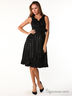 Оригинальное платье без рукавов, с глубоким V-образным вырезом, декорировано геометрическим блестящим принтом, рюшами, воланом по всей длине и функциональным поясом.