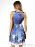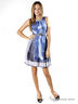 Очаровательное платье без рукавов, длиной по колено, с отрезной линией талии и округлым вырезом горловины. Платье декорировано широкими складками, защипами, функциональным текстильным поясом и принтом "акварель", выдержанном в теплых тонах.