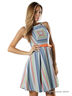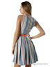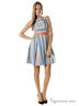 Летнее платье без рукавов, с отрезной линией талии. Платье выполнено из плотной набивной ткани с жаккардовым геометрическим орнаментом и украшено кожаным ремешком с ярким тканевым покрытием и декоративным бантом.