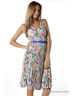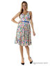 Летнее платье без рукавов, с отрезной линией талии. Верх - топ с глубоким V-образным вырезом, низ - гофрированная юбка. Платье декорировано ярким принтом с изображением разноцветных ключей и контрастным кожаным ремешком с текстильным покрытием.