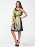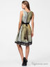 Очаровательное платье без рукавов, длиной по колено, с отрезной линией талии и округлым вырезом горловины. Платье декорировано широкими складками, защипами, функциональным текстильным поясом и принтом "акварель", выдержанном в теплых тонах.