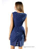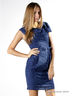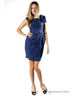 Платье - футляр без рукавов, длиной по колено, с отрезной линией талии и круглым вырезом горловины. Низ- короткая юбка, украшенная неглубокими карманами; верх- топ, украшенный защипками и накладной деталью на одном плече. Платье декорировано функциональным поясом, однотонным жаккардовым принтом и мелкой аппликацией "в крапинку".