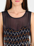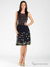 Короткое шифоновое платье без рукавов, с отрезной линией талии, декорировано цветной аппликацией, вышивкой и полосой-орнаментом с нитью люрекса по нижнему канту.