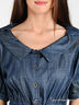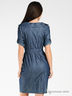 Джинсовое платье с отрезной линией талии, коротким рукавом, отложным воротником, декорировано металлическими пуговицами, глубокими карманами и функциональным поясом-завязкой.