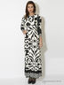 Трикотажное вечернее платье в пол с ярким принтом. Идеальная посадка для любого типа фигуры. Модель с рукавами 3/4 и округлым вырезом горловины.