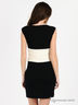 Коктейльное платье приталенного силуэта из эластичной, фактурной ткани с шелковистой подкладкой. Модель с округлым вырезом горловины, с застежкой на молнию на боку. Втачной широкий пояс контрастного цвета декорирован цепью и тесьмой. Великолепно подходит для коктейльных вечеринок!