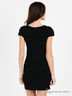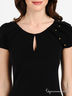 Эффектное коктейльное платье приталенного силуэта выполнено из низкоэластичной шелковистой ткани с шелковистой подкладкой. Округлый вырез горловины, застежка на молнию на спине, короткие рукава-фонарики декорированы металлическими клепками. На полочке выполнена оригинальная прорезь. Это платье станет лучшим украшением Вашего гардероба.