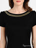 Элегантное платье приталенного силуэта выполнено из плотной, неэластичной шелковистой ткани. Округлый вырез горловины, застежка на молнию на спине, короткий прямой рукав, изделие декорировано золотистой вышивкой гладью. Великолепное сочетание классики и роскоши!