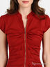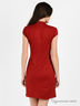 Эффектное платье приталенного силуэта выполнено из эластичной, фактурной ткани. Ворот-стойка, застежка на молнию, короткий рукав, полочка декорирована разнообразной драпировкой. Стильный вариант на все случаи жизни.
