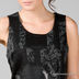 Стильное трикотажное платье без рукавов и с круглым вырезом горловины. Спереди платья модный и оригинальный принт и боковые карманы.