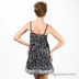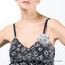 Стильное платье на тонких регулируемых бретелях, с V-образным вырезом горловины, декорированное розой. Завышенная линия талии "посажена" на резинку. Низ талии украшают воланы.