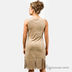 Стильное трикотажное платье без рукавов, с круглым вырезом горловины. Низ платья украшает бахрома.