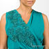 Стильное воздушное платье-баллон без рукавов и с V-образным вырезом горловины. Лиф платья с запахом и декорирован рюшами. Юбка платья ниспадает мягкими складками.